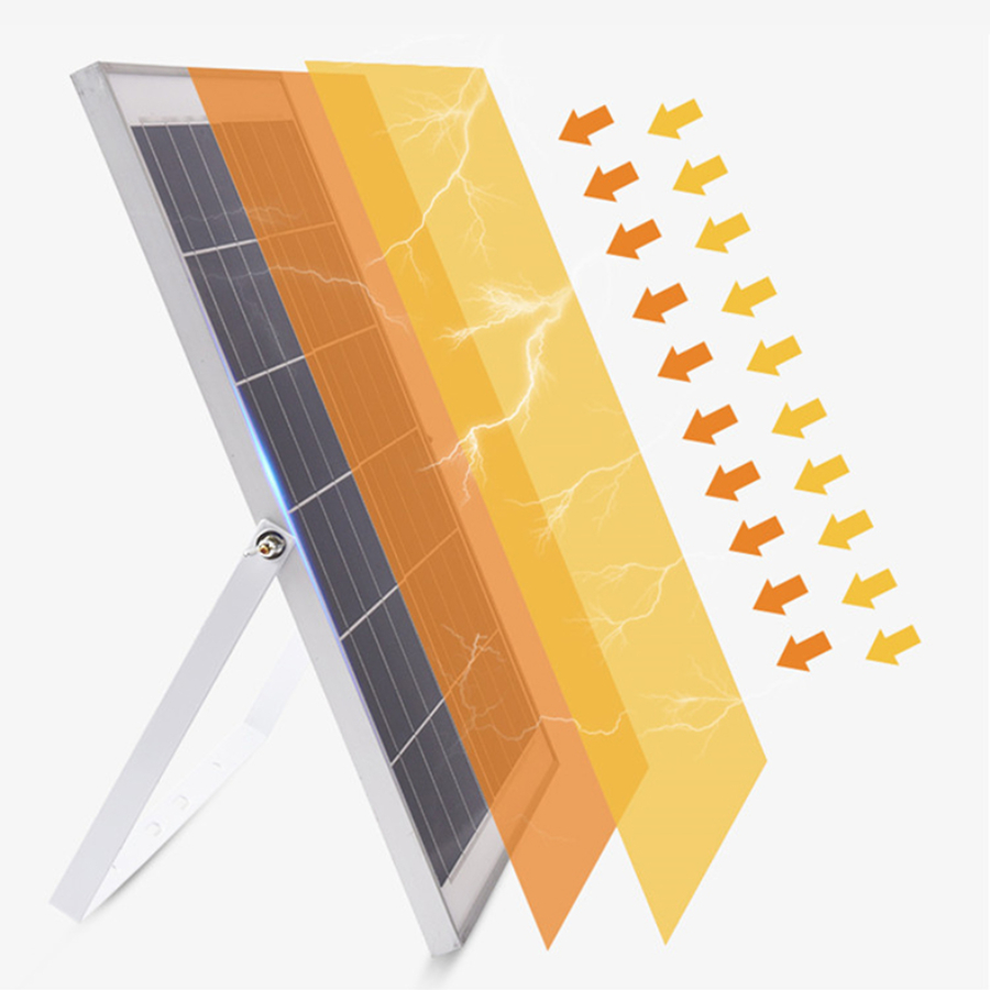 – Vào ban ngày, tấm pin năng lượng mặt trời hấp thụ ánh sáng mặt trời và tiến hành chuyển hóa quang năng hấp thụ được sang điện năng, sau đó vận chuyển điện năng sang pin sạc nằm bên trong thân đèn thông qua cáp nối để dự trữ.